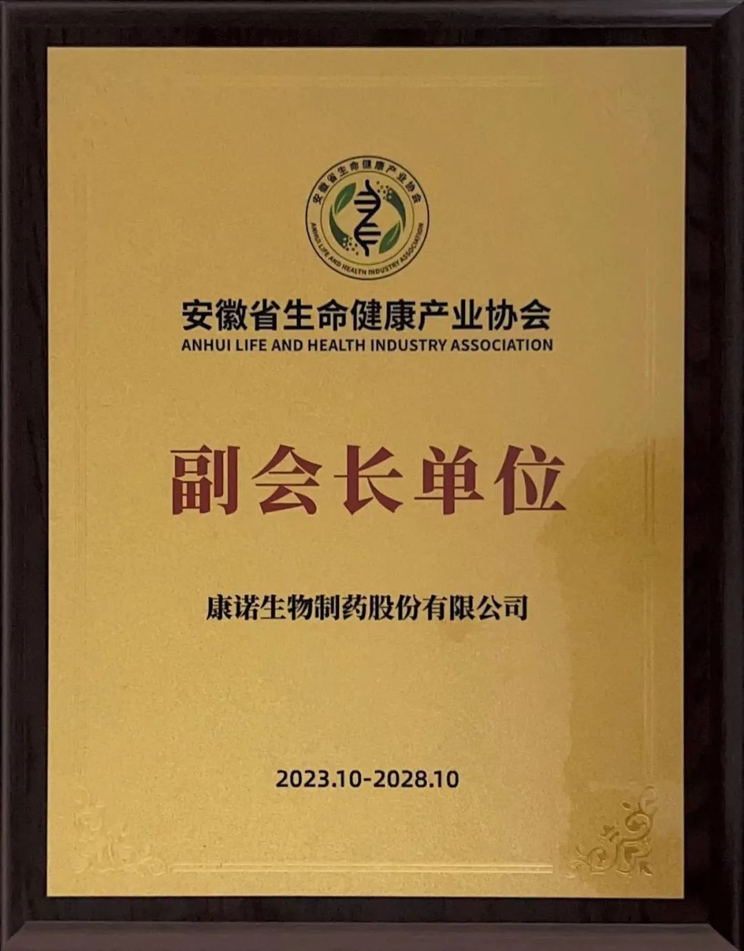 康諾生物當選安徽省生命健康產業協會第一屆副會長單位